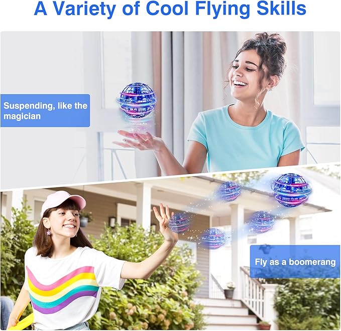 - 【Rich Flying Skills】You can control the flying orb ball to float, glide and climb in the air, or throw it out and fly back like a boomerang, just like you have magic. Control the angle of the flying toys to change the flight path, unlock and explore endless possibilities, let the magic happen.